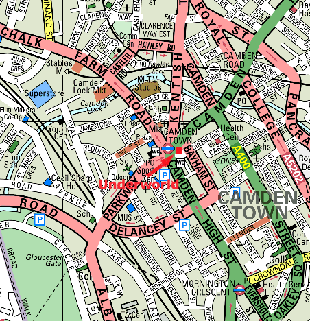 Take the Northern Line to Camden Town tube, and the Underworld is on the main junction at Camden, next to the World's End pub.